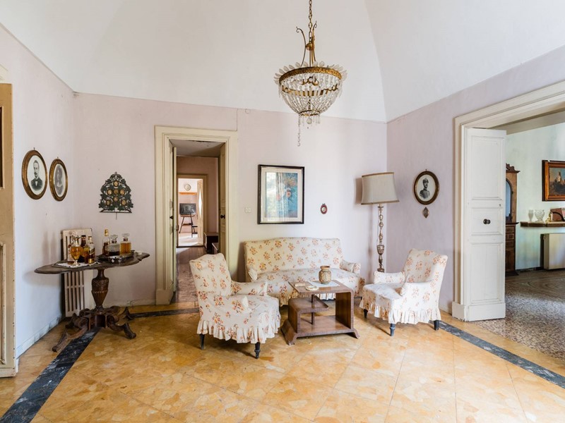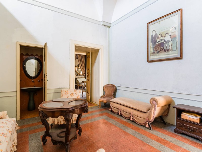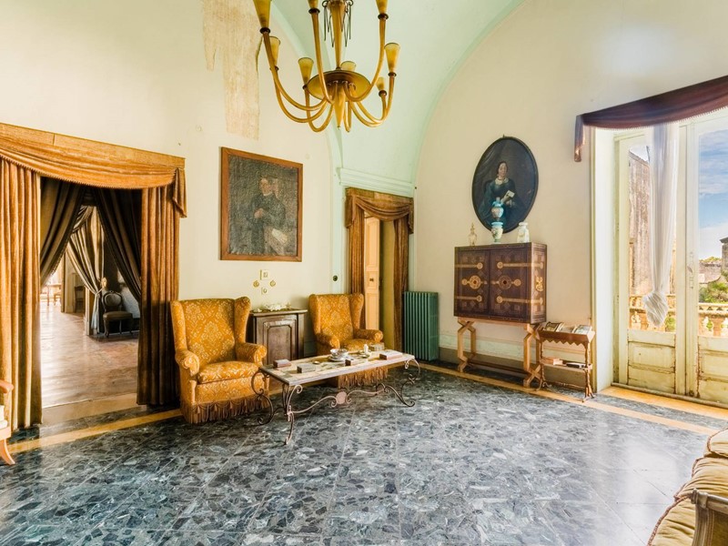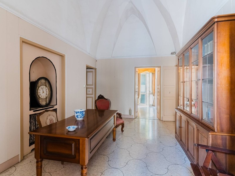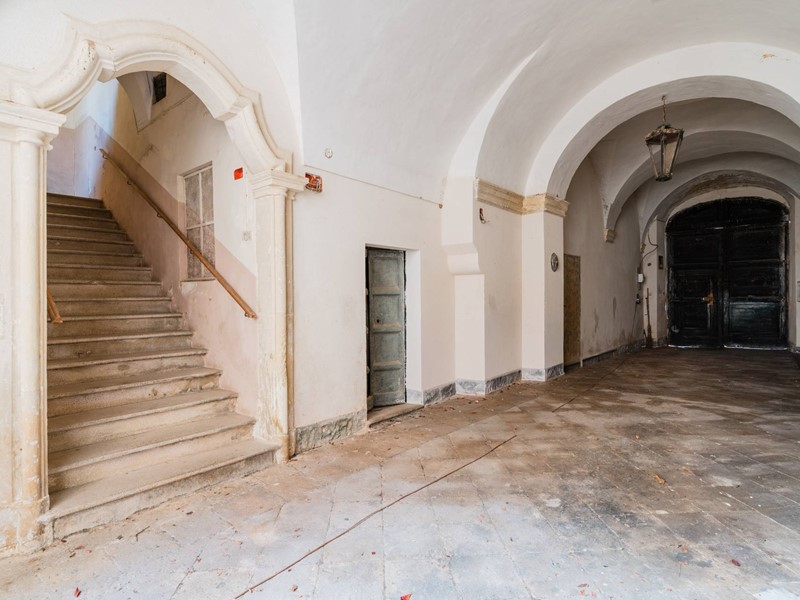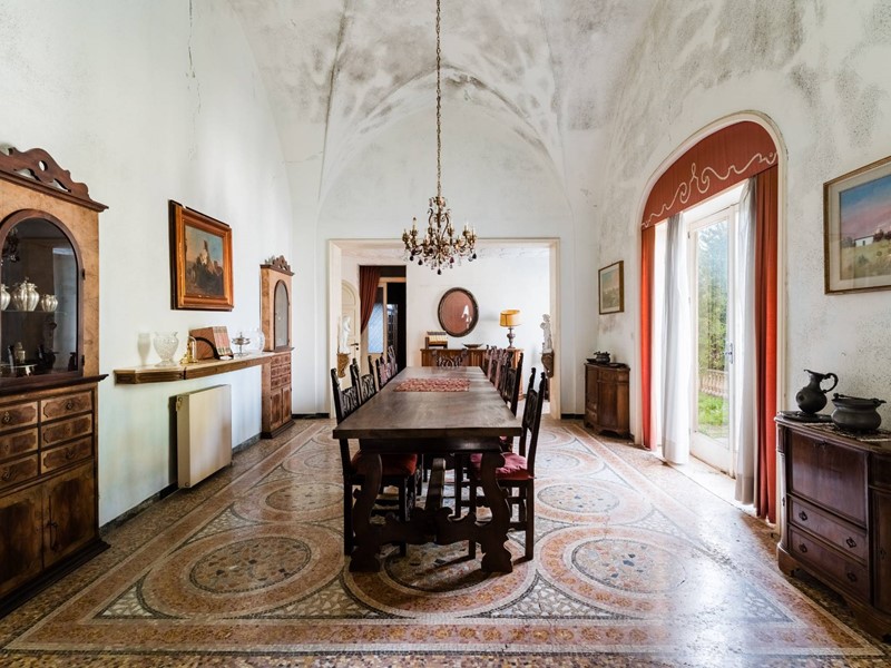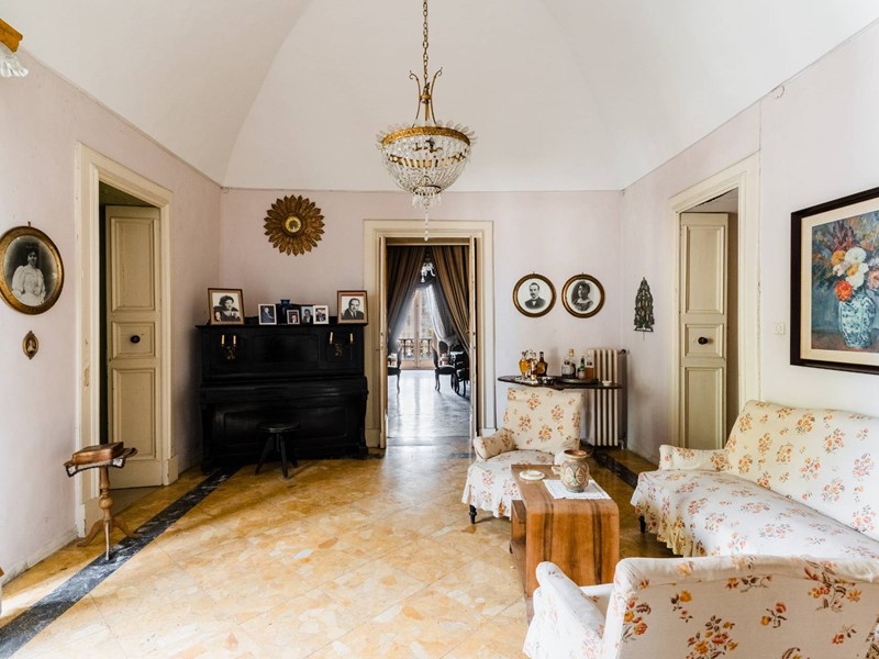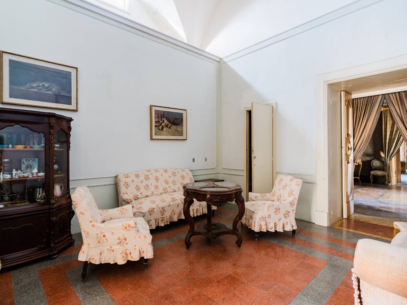 Al piano terra per 260mq, si trovano uno studio storico della famiglia nobiliare e due eleganti atri di rappresentanza e, per 780 metri quadrati, numerosi locali di servizio e deposito, storicamente destinati alla produzione di olio e vino. Questi spazi testimoniano la vocazione artigianale e produttiva che ha caratterizzato la dimora nel corso degli anni.