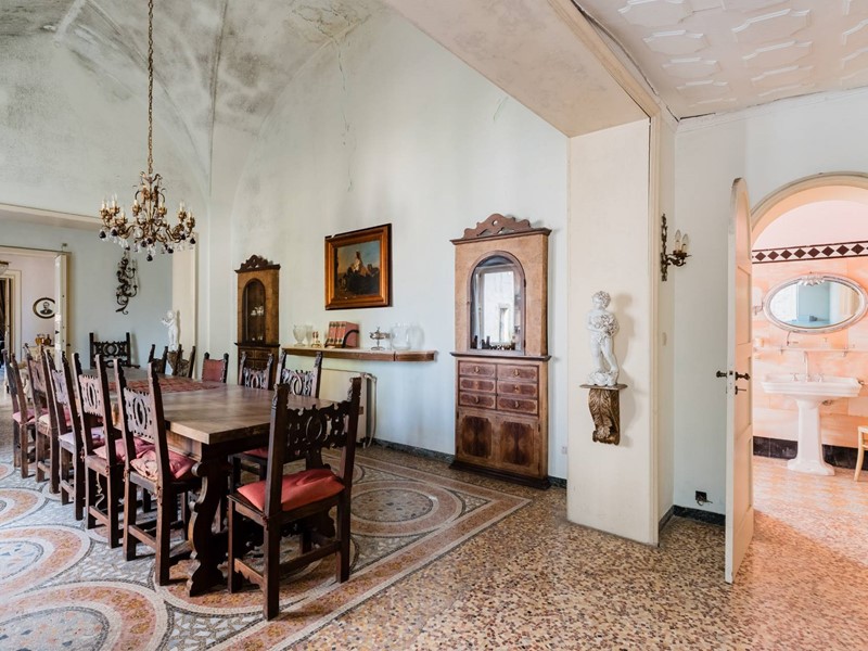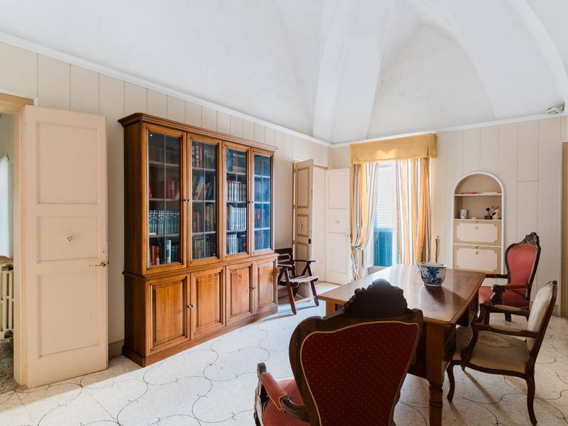 Ampie sale di rappresentanza, camere padronali e numerose terrazze panoramiche che regalano vedute mozzafiato sul borgo e sul giardino, creando un connubio perfetto tra interno ed esterno. Ambienti di servizio con soffitti voltati a stella e a botte completano lofferta funzionale della dimora.