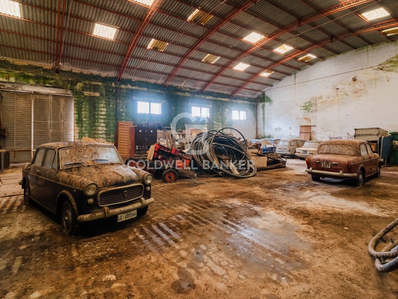 A completare la proprietà, sul retro e con accesso indipendente da Via Galatina, sorgono due capannoni industriali per un totale di 2.000 mq, oltre a 600 mq di magazzini.