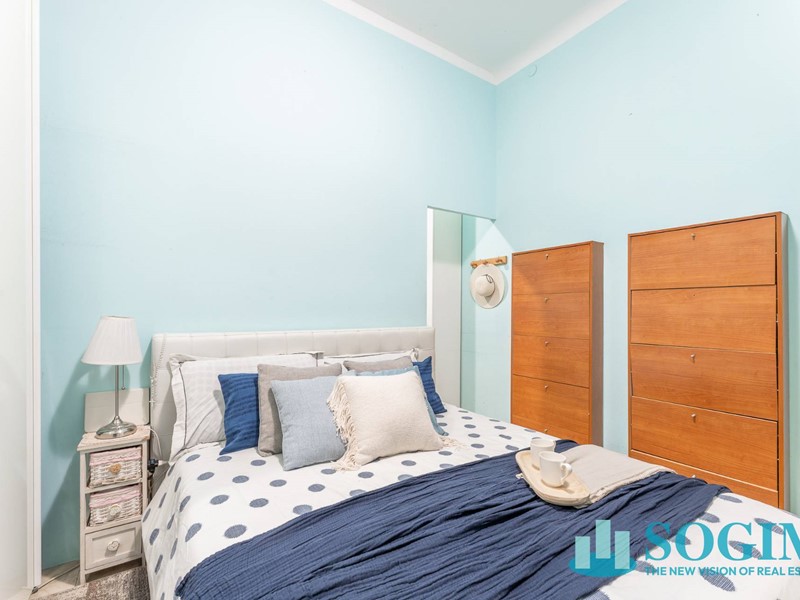 Dall'altro lato, entriamo nella zona notte con ampia camera, attualmente suddivisa in camera matrimoniale e camera singola, e un bagno.