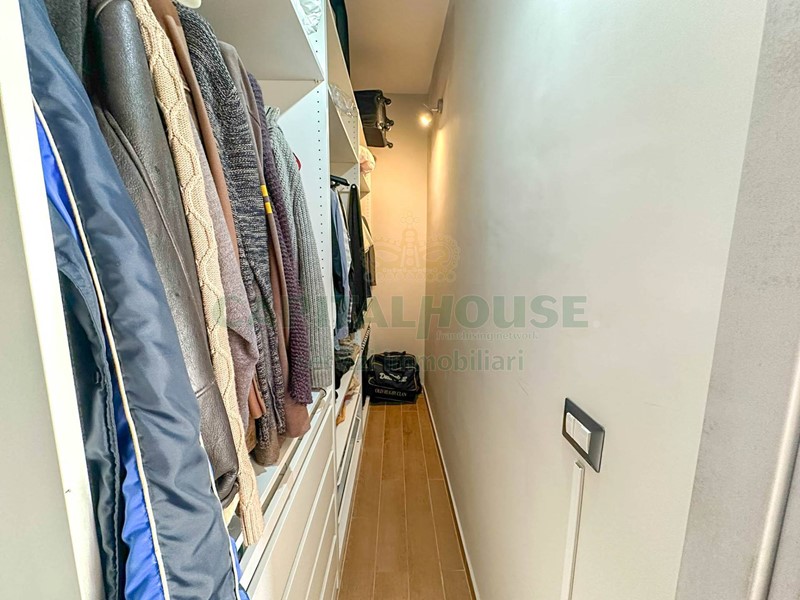 Nello specifico ha una metratura interna di c.ca 95mq con ambiente salone-cucina living, due camere da letto ampie, due bagni e cabina armadio ( sia un bagno che la cabina armadio hanno accesso diretto da una delle due camere da letto. )