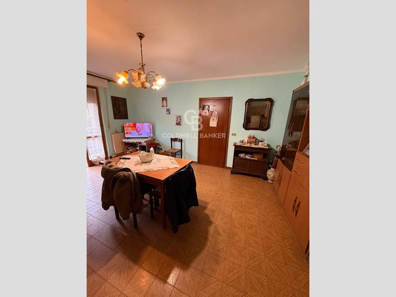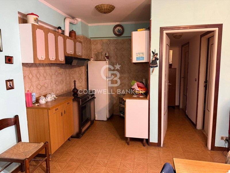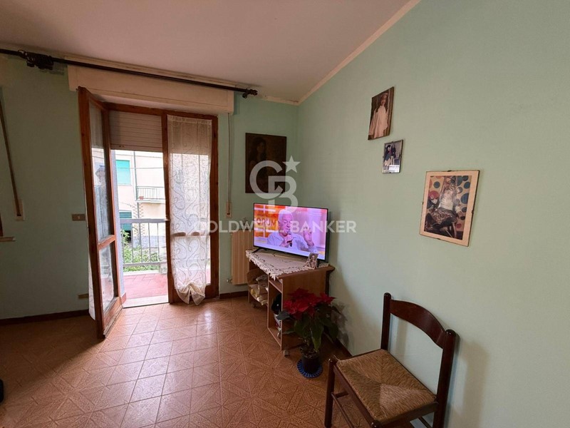 Limmobile, posto al primo piano, si compone di ingresso su soggiorno con cucina a vista, luminoso e dotato di portafinestra con accesso al balcone, due camere da letto e bagno.