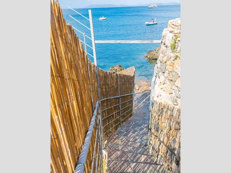 La proprietà vanta ampie terrazze panoramiche, dalle quali è possibile lasciarsi cullare dal suono del mare e godere del sole fino al suggestivo tramonto sullArgentario. Fiore allocchiello della proprietà è lesclusiva piattaforma in concessione, a sfioro sullacqua, un elemento di assoluto prestigio che consente un accesso diretto al mare in un contesto di totale riservatezza.