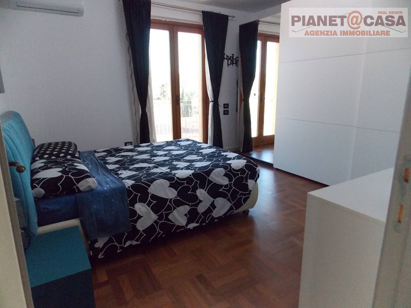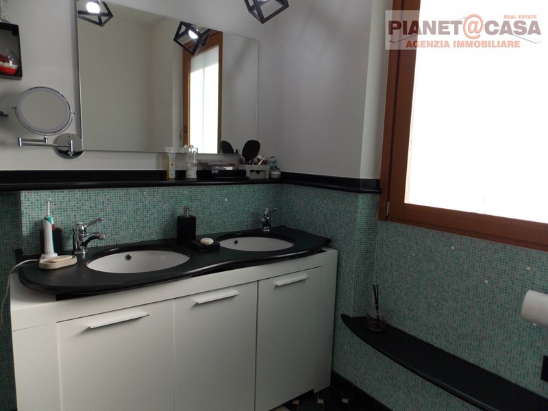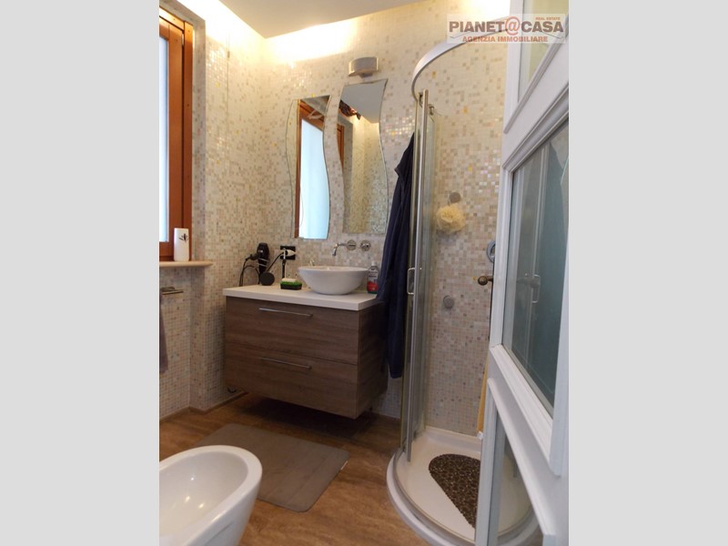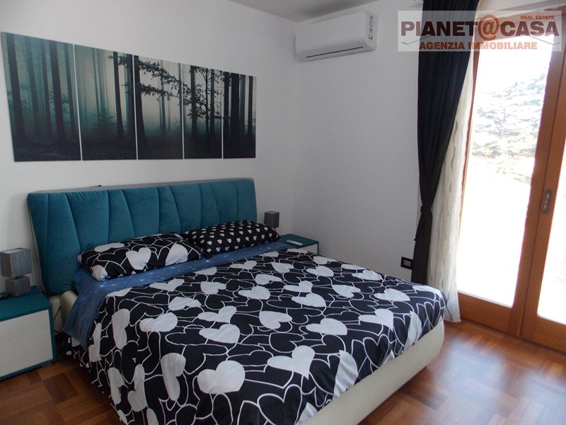 L' appartamento, pari al nuovo, presenta finiture di pregio quali: pavimentazione in parquet su quasi tutta la superficie, bagni mosaicati, impianto di area condizionata caldo e freddo, predisposizione canna fumaria per camino o stufa a pellet, porte e termosifoni d'arredo, infissi in legno con doppio vetro e portoncino blindato con pannello personalizzato.