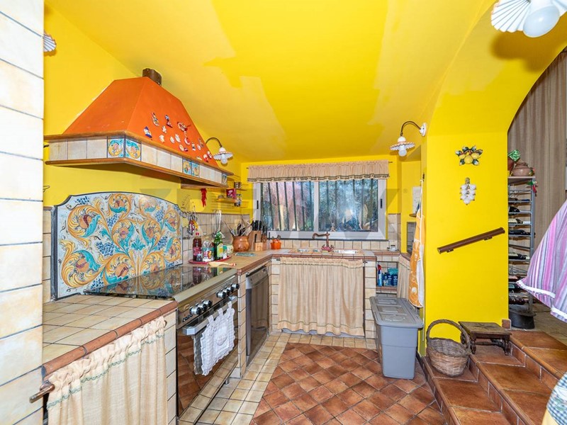 Limmobile, libero su quattro lati, accoglie con un ampio spazio esterno carrabile, che consente un comodo accesso con autovettura, affiancato da un utile garage e da aree esterne curate, ideali per momenti di relax allaria aperta. Una postazione terrazzata riservata diventa il luogo perfetto per godere della tranquillità della zona, tra silenzi e profumi mediterranei.