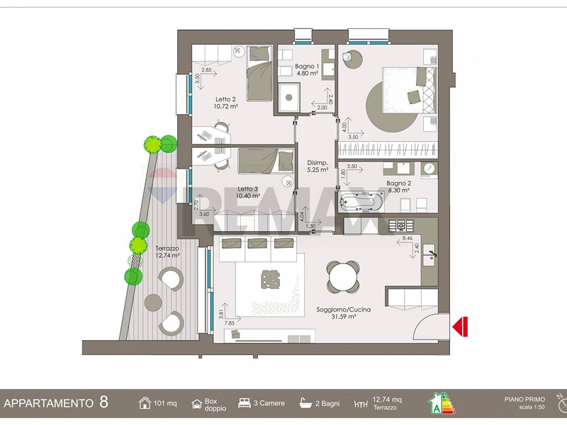 ℹ️ Le indicazioni, le planimetrie e le metrature commerciali riportate devono essere considerate indicative e non hanno valore contrattuale.