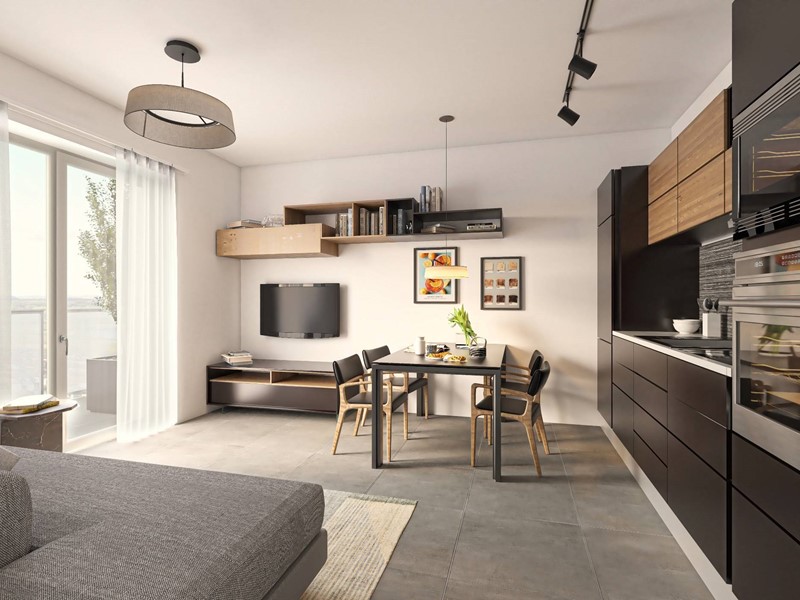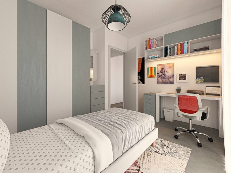 Limmobile è composto da ingresso su disimpegno, zona living con cucina a vista, due camere da letto di cui una matrimoniale, un bagno, zona lavanderia, un terrazzo e un balcone.
