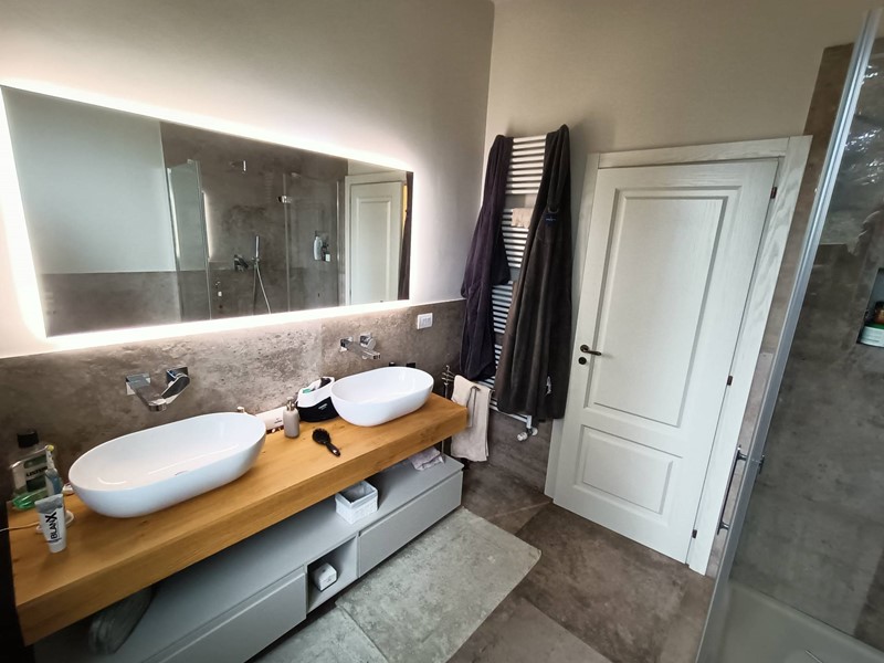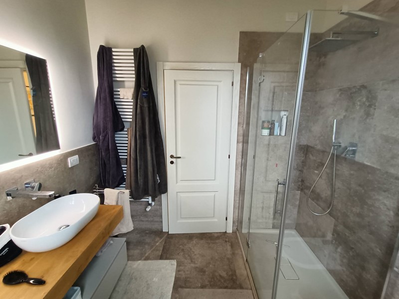 L'appartamento è posto al primo ed ultimo piano e risulta composto da una grandissima zona pranzo-soggiorno con camino, cucina con isola a vista, tre camere, delle quali due matrimoniali, un grande bagno finestrato ed una bella terrazza, dalla quale è possibile godere di uno splendido panorama sulle colline circostanti.