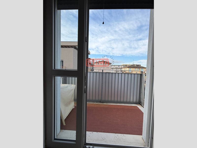 camera matrimoniale molto spaziosa, arredata con letto matrimoniale, armadio, comò e secondo divano letto, con accesso a una terrazza di circa 5 mq, ideale per momenti di relax allaperto