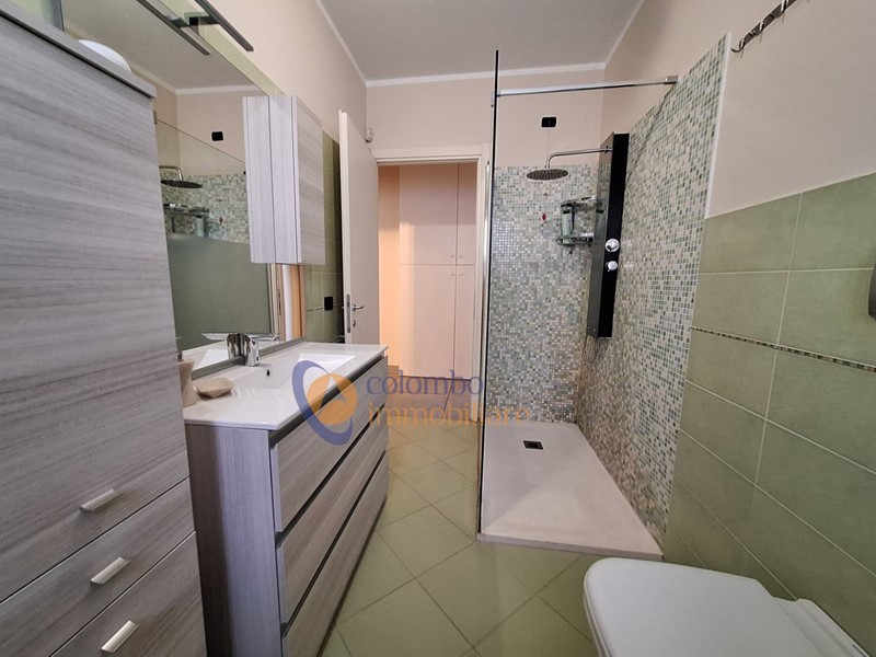 Questo appartamento si trova in una graziosa palazzina di sole 8 unità abitative edificata nel 2011. L'appartamento, che si trova al piano terra, è composto da un soggiorno con accesso al giardino, una cucina abitabile con balcone, due camere di dimensione matrimoniale con uscita in giardino e doppi servizi, uno con vasca e l'altro con doccia. L'area esterna, che ha una superficie di circa125 mq prevalentemente adibita a verde (ora tappezzata con prato artificiale) comprende anche una zona barbecue pavimentata con piastrelloni 40 x 40 posati su letto di sabbia per grigliate e cene all'aperto.
