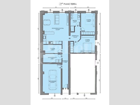 L'appartamento è composto da sala/cucina, 2 camere, bagno, vano tecnico lavanderia e cantina/ripostiglio. Volendo autorimessa, a 20.000 euro.