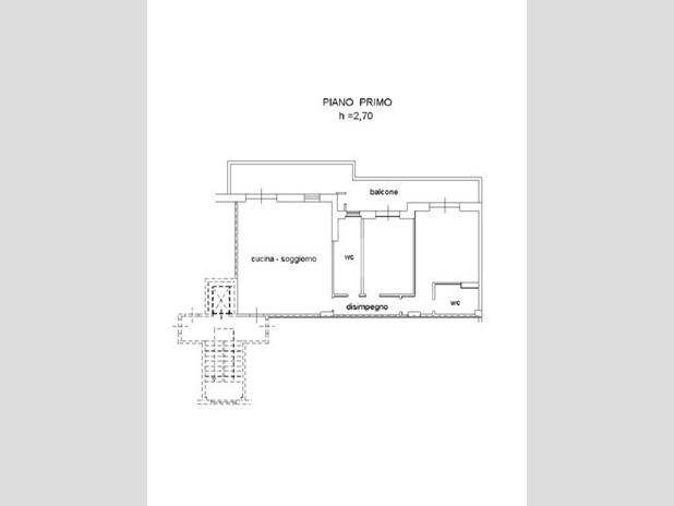 L'immobile è ubicato al piano primo in palazzo fornito di ascensore ed è composto da 3 vani e doppi accessori.