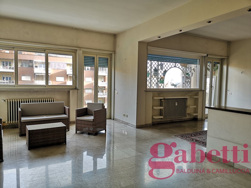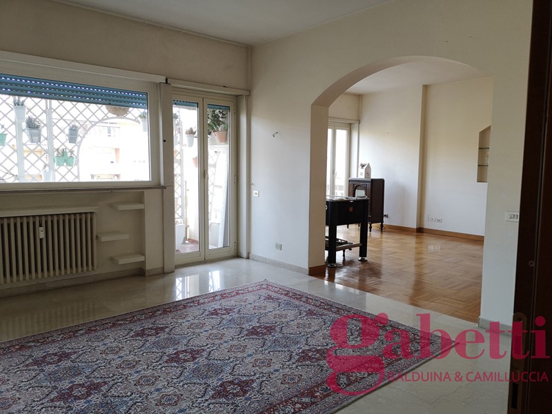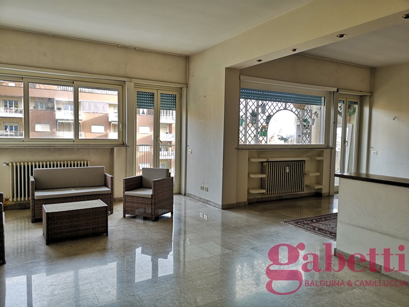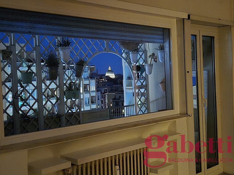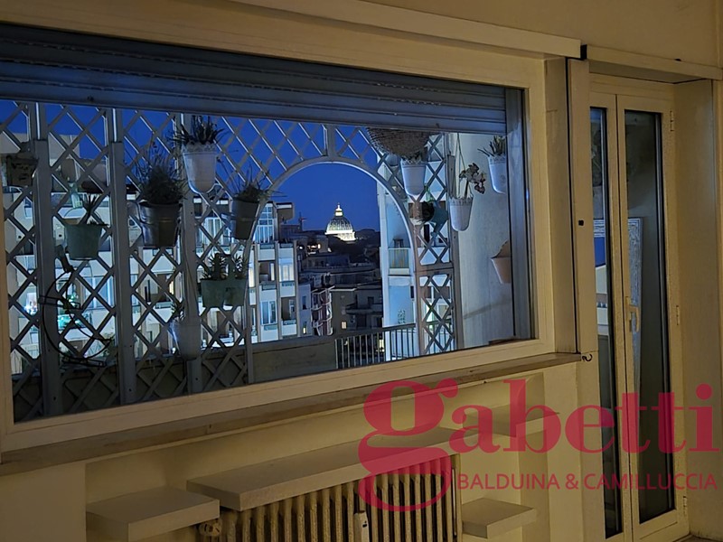 GabettiBalduina Piazza della Balduina in stabile con servizio di portineria doppio ascensore appartamento al 5° piano con vista panoramica sulla cupola e affaccio aperto sulla Piazza composto da ingresso principale con comodo armadio spogliatoio, salone triplo con balcone, corridoio con armadi a muro, zona di servizio con cucina abitabile dove è presente il secondo ingresso ed un balcone e un grande bagno con doccia, disimpegno zona notte con finestra ed angolo studio, 3 camere da letto (possibilità quarta camera), 2 bagni di cui uno con vasca idromassaggio e cantina ? 850.000,00 - GABETTI Agenzia Balduina - 06.35402994 - 331.3146178 -