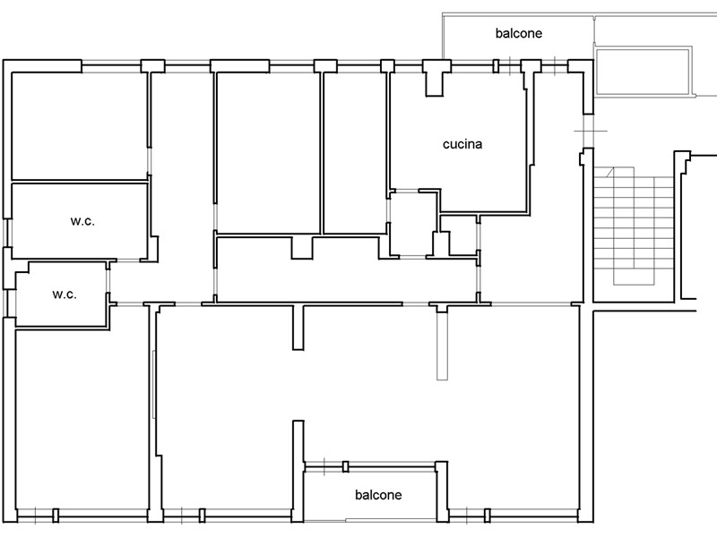 Peculiarità: alte potenzialità di ridistribuzione degli spazi interni e/o frazionamento. Pavimentazione omogenea in parquet, riscaldamento centralizzato a consumo, portone d'ingresso blindato.