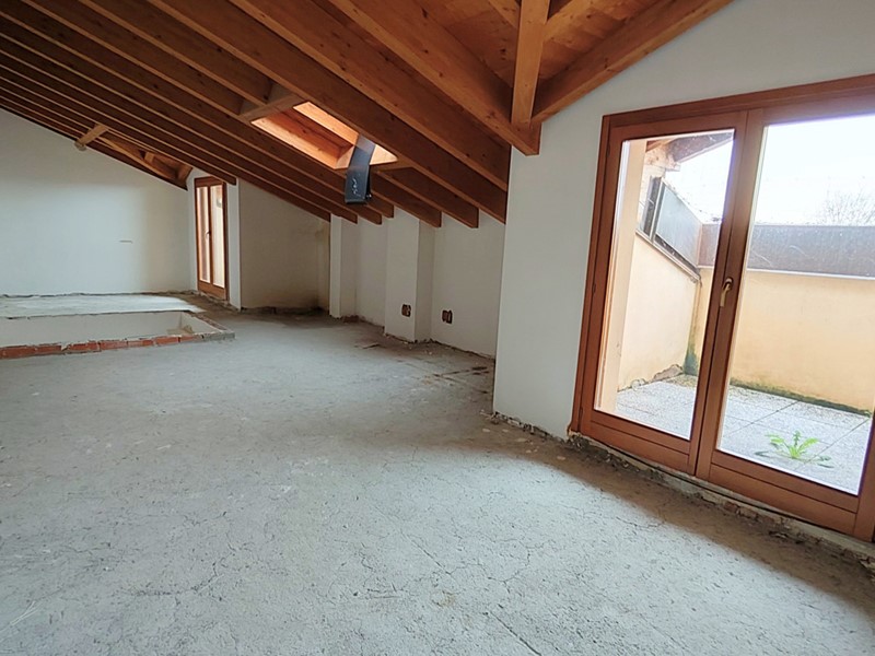 - SAN NICOLO' - Proponiamo in vendita un appartamento situato al secondo piano con ascensore di una palazzina di recente costruzione. L'immobile, è disposto su due livelli e vanta tre terrazzi e un balcone, che garantiscono luminosità e piacevoli sfoghi esterni, ideali per vivere la casa in ogni stagione. Al primo livello abbiamo due stanze entrambe con accesso all'esterno, una ad un balcone e l'altra ad un terrazzino, e un bagno finestrato con doccia. Al piano superiore, collegato internamente con una scala troviamo una mansarda da ultimare con la possibilità creare due stanze con terrazzo annesso ed un servizio . Completano la proprietà una cantina e ampio box auto di 26mq.