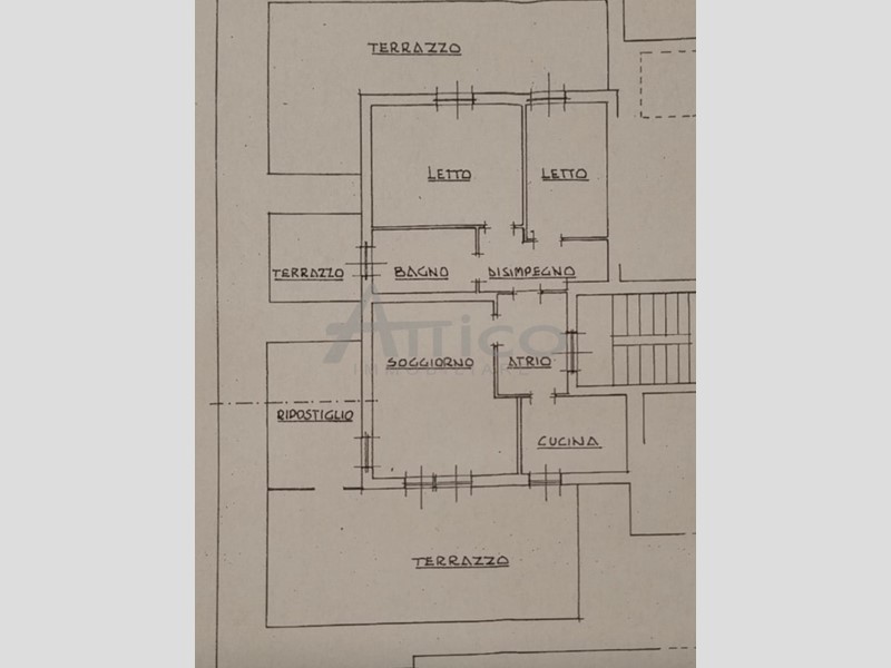 Granzette - AFFARISSIMO !! ATTICO al 3° P. ( NO Ascensore) con bellissime e grandi terrazze panoramiche su 3 lati, composto da: 2 letto matrimoniali, cucina separata, soggiorno, ripostiglio, bagno e garage fuori-terra.