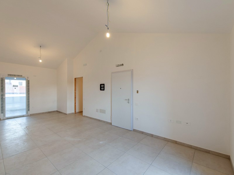 Appartamento nuovo al piano secondo e ultimo di un piccolo condominio con l'ascensore. L'appartamento è un comodo trivano che si sviluppa su tutto il piano ed è composto da ingresso-salone, cucinotto, e poi da un disimpegno si accede alla zona notte composta da camera matrimoniale con la cabina armadio, camera ragazzi, ripostiglio e due bagni. Ottima espsizione al sole con affaccio su delle ampie verande in tutti e due i lati. Dotato di climatizzatori e impianto fotovoltaico per il risparmio energetico. Il posto auto è compreso nella proposta ed è quello che ha facilità di accesso. Classe Energetica minimo B. La presente proposta è soggetta a IVA.