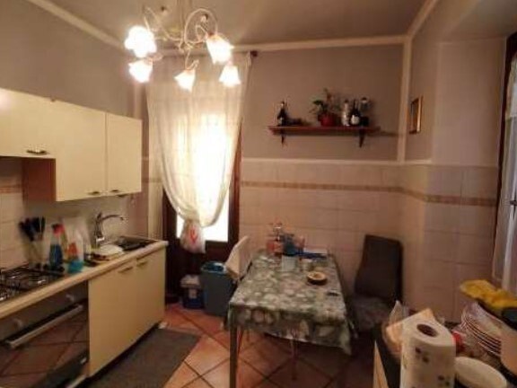 Abitazione di tipo economico con cantina e autorimessa disposto su tre livelli con cucina, zona pranzo, soggiorno, bagno e disimpegno con scala a piano terra, 2 camere (di cui una doppia) con bagno al primo piano, Soffitta non praticabile. Cantina non comunicante al piano seminterrato con accesso diretto dalla Via Cavour. Autorimessa in discrete condizioni, disposta a piano terra con accesso diretto alla Via Cavour.