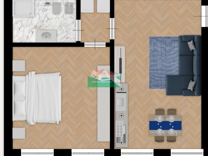 Scopri questo splendido appartamento in fase di ristrutturazione, che sarà pronto per essere abitato a partire da aprile 2026. Situato al primo piano di un elegante edificio, l'immobile offre un'atmosfera moderna e accogliente, perfetta per chi cerca comfort e stile. Con una superficie commerciale di 45 m², l'appartamento è composto da un luminoso open space che unisce sala e cucina, una camera da letto spaziosa e un disimpegno ad uso lavanderia.