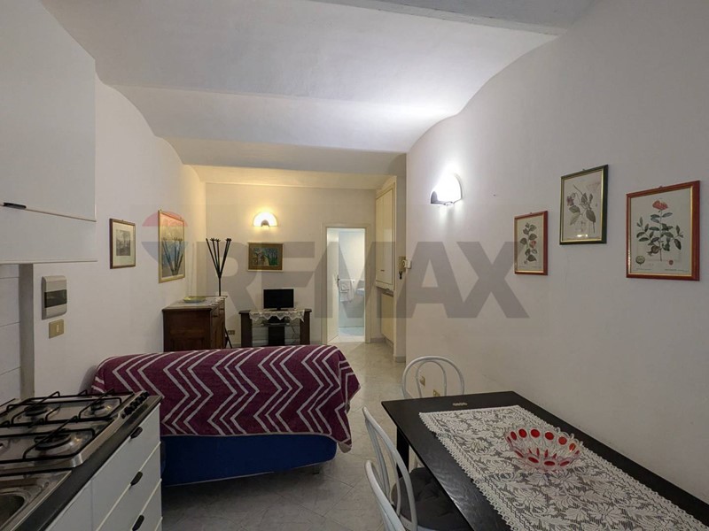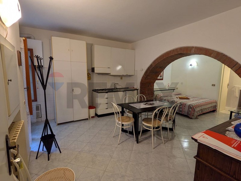 Salendo al primo piano, troviamo un bilocale indipendente con bagno, impreziosito da un camino che dona calore e carattere allambiente. La zona giorno è luminosa e accogliente, con dettagli che richiamano la tradizione delle case del centro storico. Una soluzione ideale sia come abitazione principale sia come alloggio per soggiorni brevi, particolarmente richiesti in questa posizione.