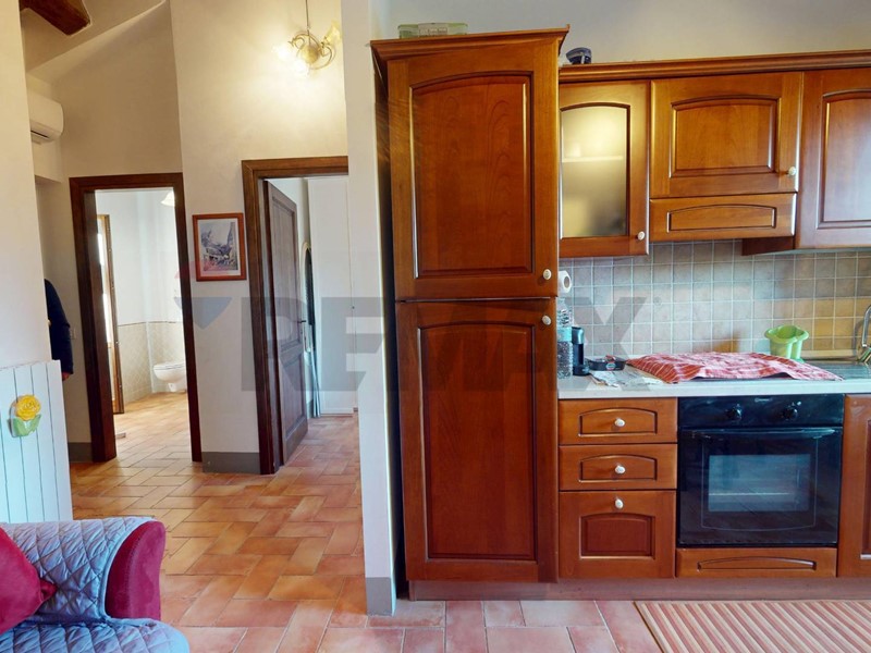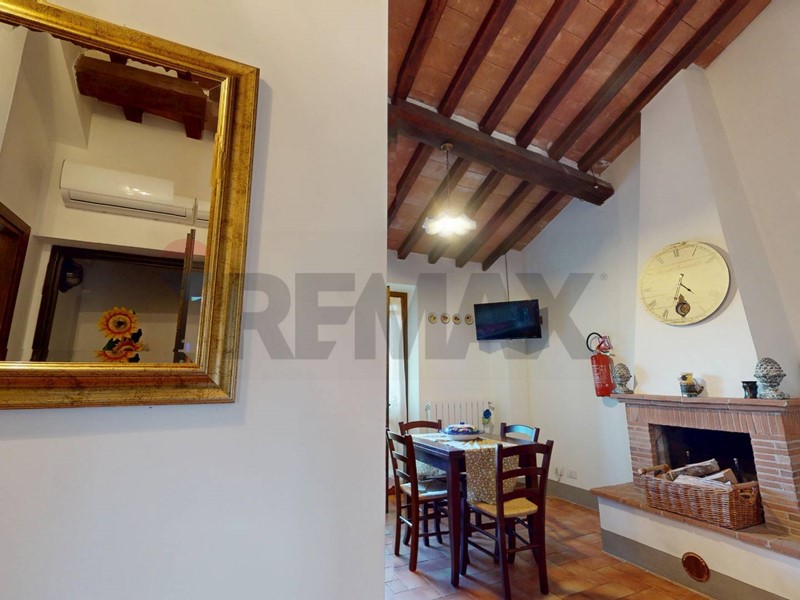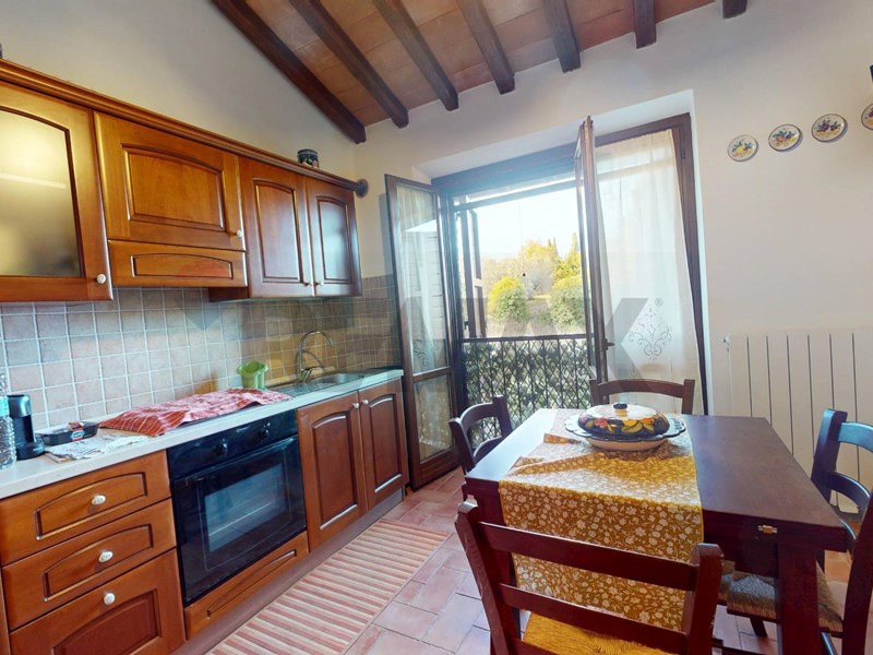 Lappartamento colpisce per il suo stile tipicamente umbro: travi in legno a vista, pianelle originali, pavimenti in cotto e un bellissimo caminetto che rende lambiente caldo, accogliente e perfetto per creare unatmosfera unica nelle serate invernali.