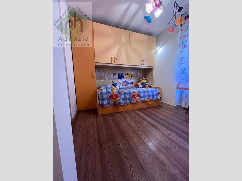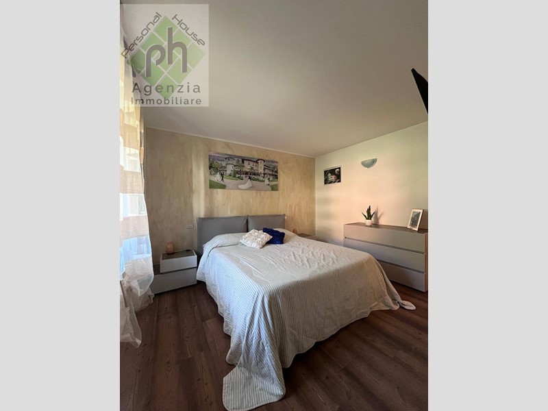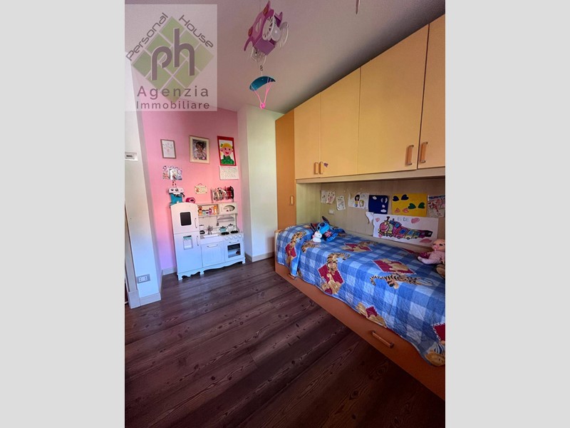 La zona notte ospita tre camere da letto, tra cui una matrimoniale con cabina armadio, pensata per garantire ordine e comfort quotidiano.