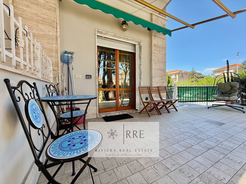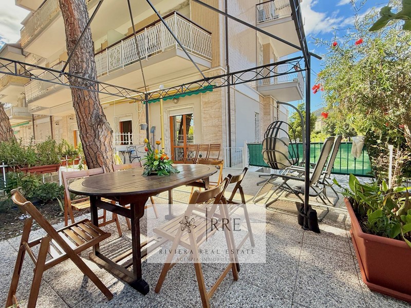 In vendita a Loano un ampio trilocale ristrutturato di circa 95 mq. situato al piano rialzato con ingresso indipendente davanti ad una verde pineta, ma a 100 metri dal mare.