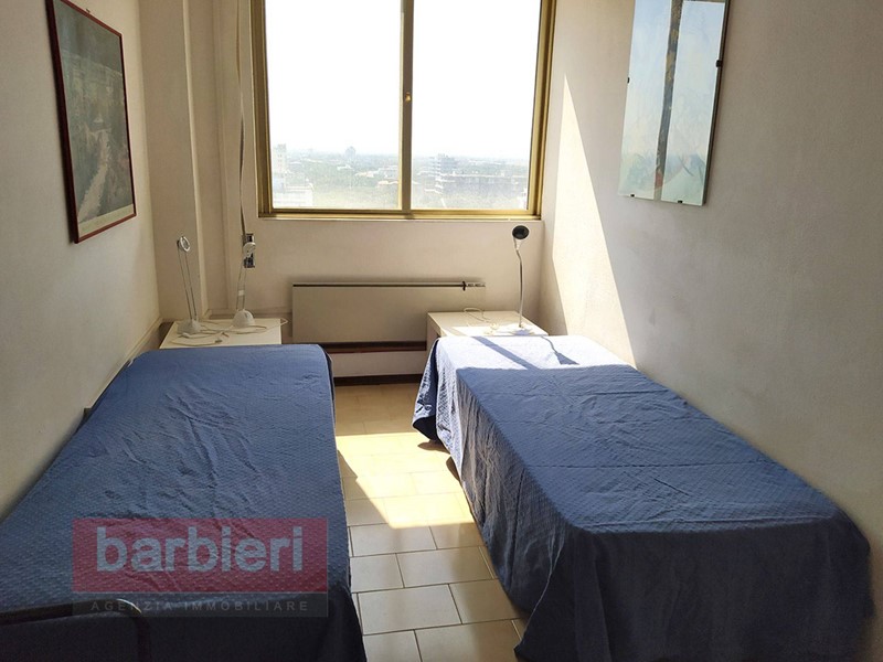 Affittiamo a Milano Marittima, a pochissimi passi dal mare, appartamento al 11° piano con ascensore e vista mare composto da: soggiorno con angolo cottura, una camera matrimoniale con un letto singolo aggiunto, una camera doppia e bagno con doccia.