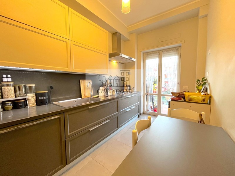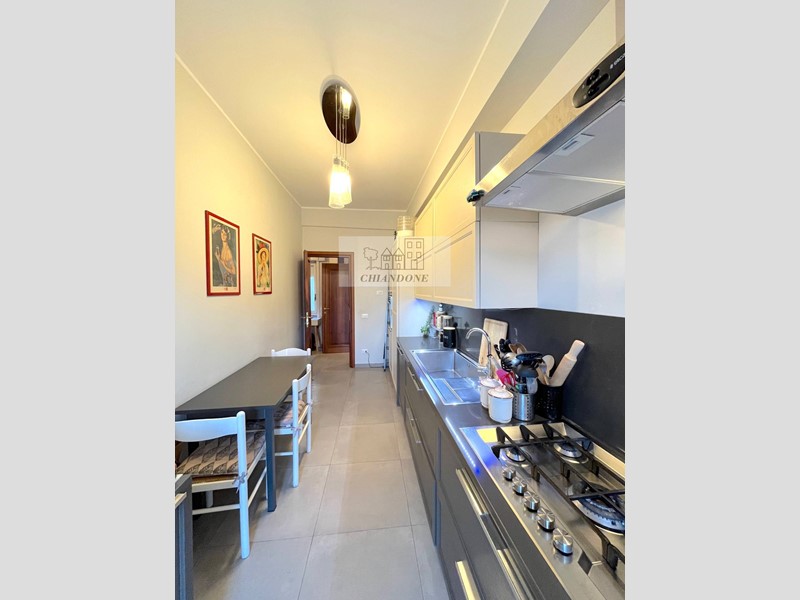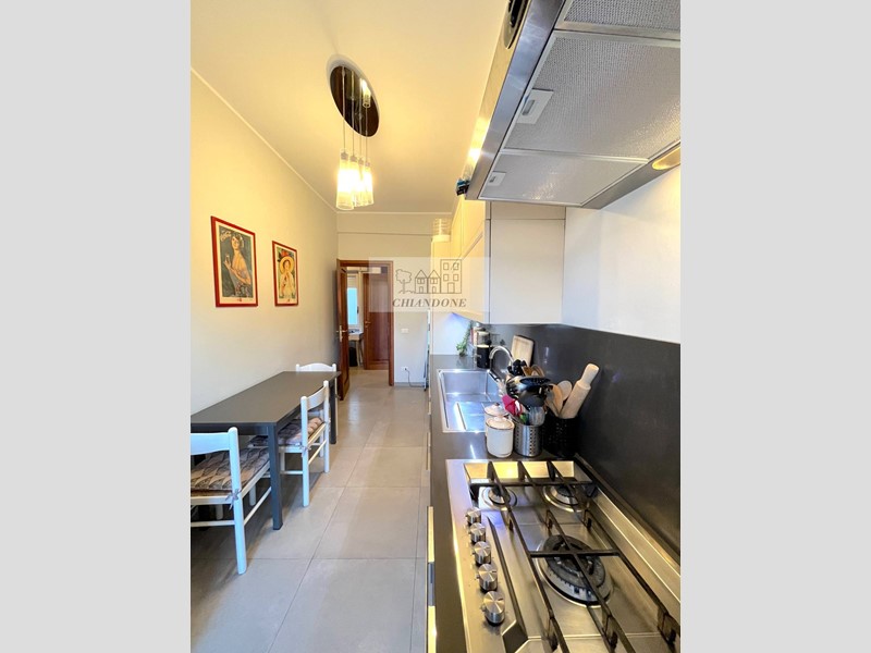Le parti comuni dell'appartamento sono ampio ingresso, soggiorno, bellissima cucina completa - dotata anche di forno e lavastoviglie - con angolo pranzo, corridoio e balcone.