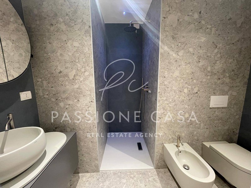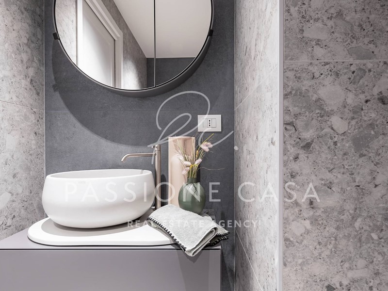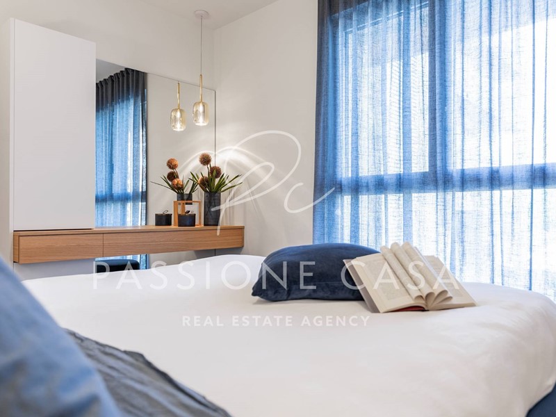La zona notte, ben separata, ospita una camera matrimoniale, una seconda camera, ideale come stanza per ragazzi, studio od ospiti; due bagni, entrambi rifiniti con materiali contemporanei, di cui uno finestrato.