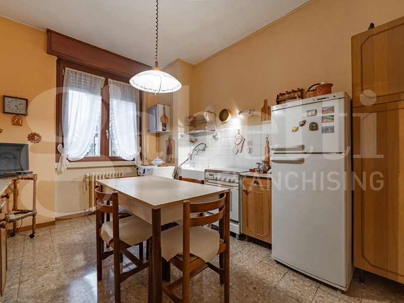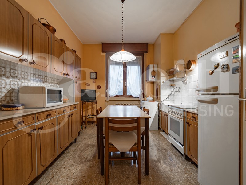 L'immobile, posto al secondo piano con ascensore, è composto da ingresso, cucina abitabile, soggiorno con doppio accesso al balcone, camera matrimoniale con doppia esposizione e bagno finestrato.