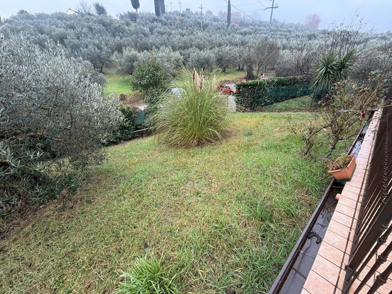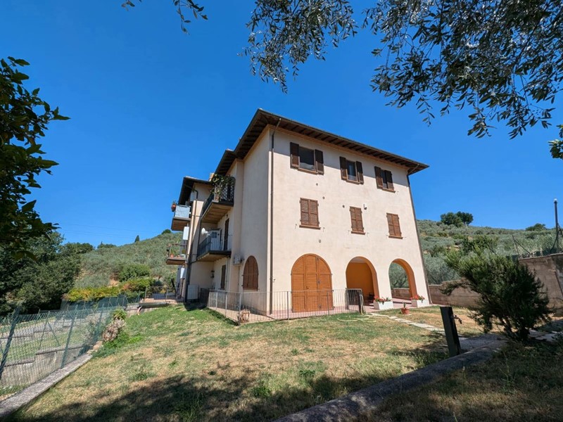 Bettona- loc. Colle: In zona tranquilla e panoramica disponiamo di appartamento in ottimo stato posto al piano terra di piccola palazzina di recente costruzione. La soluzione si compone di soggiorno con cucina a vista su misura, tre camere da letto di cui due matrimoniali, due bagni di cui uno con finestra ed un ripostiglio. A completamento della proprietà lastrico solare di 40 mq, giardino privato di 170 mq ed un comodo garage di 30 mq.
