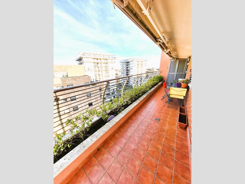 Pescara, palazzo il "Molino de Cecco" in posizione ottimale a pochi minuti dall'ingresso e uscita dell'asse attrezzato ma anche a pochi minuti dal centro e dal mare, disponiamo di appartamento al 7° e ultimo piano con ascensore così composto: ingresso, soggiorno con angolo cottura, camera matrimoniale, bagno finestrato con doccia, disimpegno con armadio a muro e ampio balcone perimetrale con tripla esposizione mare monti. L'appartamento si vende completamente arredato, ottime rifiniture parquet in tutta la casa, condizionatori e tende da sole elettriche, possibilità di garage. Classe energetica : C - € 149.000 (Rif.1304-V)