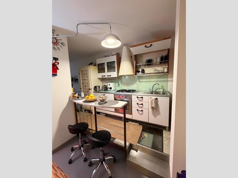 La zona giorno è composta da luminoso soggiorno con accesso a una piacevole loggia coperta, perfetta per colazioni all’aperto o per rilassarsi la sera, e da un pratico cucinotto separato che permette di tenere ben distinti gli spazi. La zona notte comprende una comoda camera matrimoniale, bagno con finestra, oltre a un utile ripostiglio e cantina al piano seminterrato, ideale per bici e scatoloni.