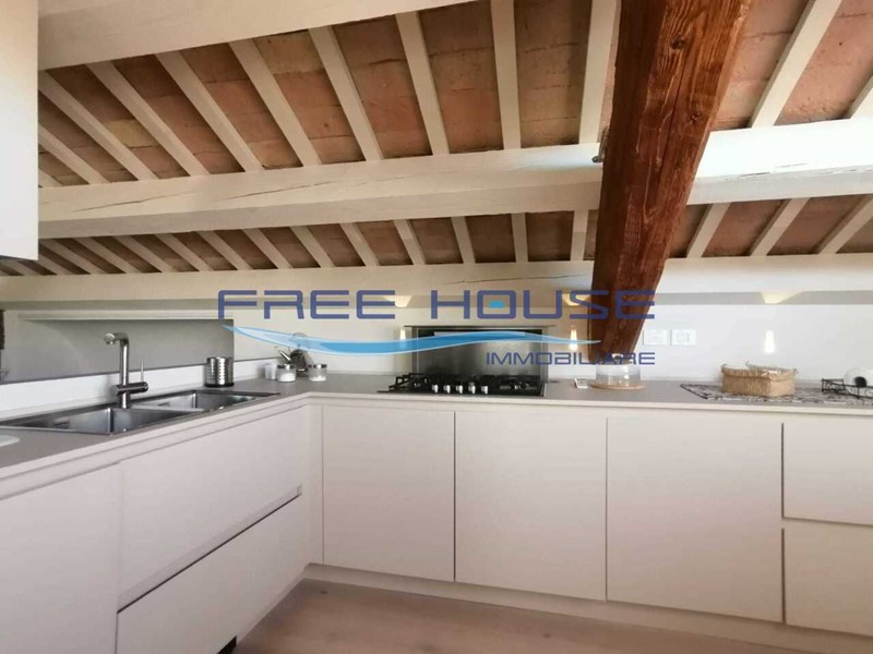 AFFITTO ESTIVO CERVIA libero agosto e giugno. Nel cuore del centro storico di Cervia, disponibile attico mansardato finemente ristrutturato e ammobiliato con arredo di design. Salendo dalla scala principale si raggiunge la zona giorno composta da un ampio living di 70 mq con ampie vetrate che donano grande luminosità a tutto l'ambiente e permettono, tramite pochi gradini, l'accesso alla terrazza in falda con affaccio panoramico sui tetti del centro storico. La cucina a vista è completa di ogni confort tra cui lavastoviglie, cappa a scomparsa e sgabelli penisola. Dirigendosi verso la zona notte, troviamo ampio bagno con vacca idromassaggio con cromoterapia e piccolo angolo lavanderia a scomparsa, una camera da letto matrimoniale e una seconda camera da letto matrimoniale con bagno privato completo di doccia in marmo e vetro con cromoterapia. Antiche travi a vista caratterizzano l'intera mansarda, in tutti i suoi ambienti. Accessoriato di Wifi, domotica per climatizzazione a distanza, controllo scenari luce e aspirazione centralizzata oltre a posto bici nella corte intera. Il prezzo è al netto dell'intermediazione di agenzia. Per informazioni Agenzia Free House Affitti 0544/973529 -Paola 349/0554431. CIN IT039007C28EK53IY7