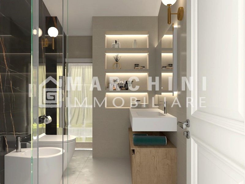 I pavimenti saranno in gres e marmo. Rivestimenti, sanitari e rubinetterie di design moderno