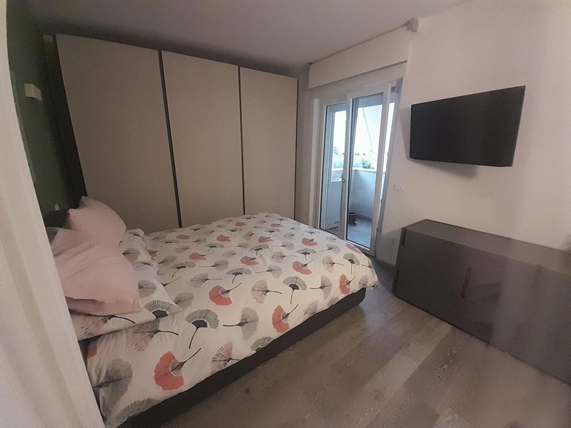 Composto da: ingresso su soggiorno con cucina a vista e accesso a ampio balcone pranzabile, disimpegno ripostiglio , zona notte con due camere con affacciano su balcone con zona lavanderia e tenda elettrica.