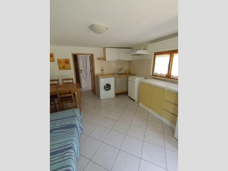 Soggiorno cottura, disimpegno, bagno con finestra e cabina doccia, camera matrimoniale