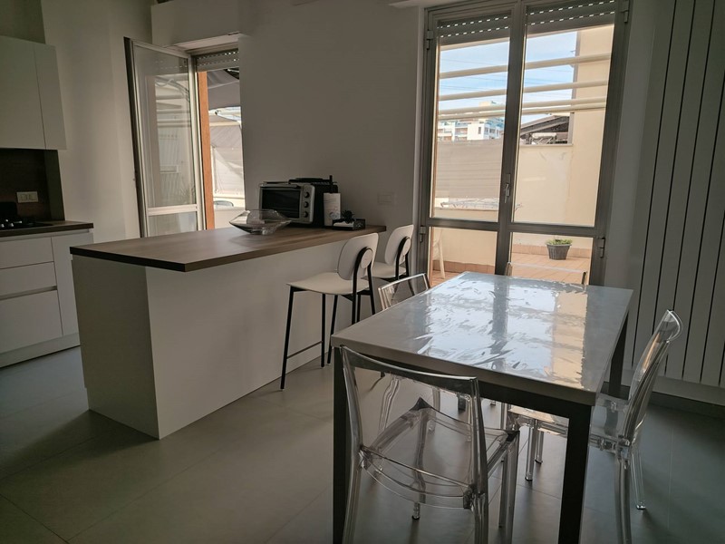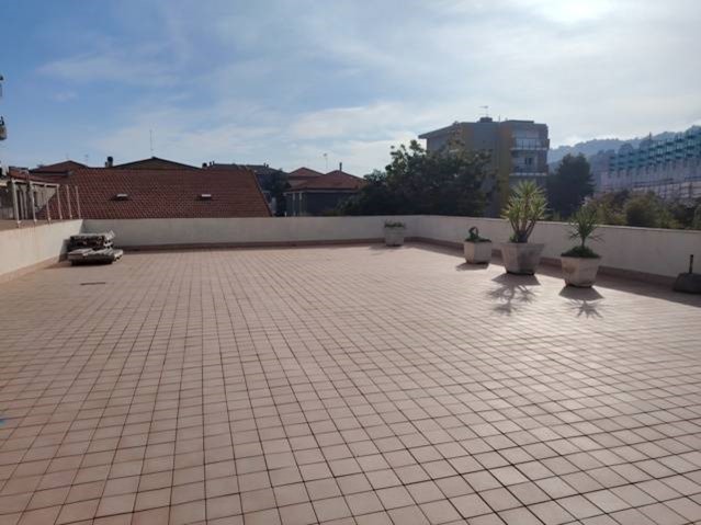 Vendesi a Montesilvano in Corso Umberto I in zona ben servita semicentrale appartamento ristrutturato inizi 2025 posto al primo piano senza ascensore composto da soggiorno con angolo cottura, camera matrimoniale, due camerette, due bagni, piccolo ripostiglio. Da tutte le stanze si può accedere al terrazzo di circa 380 mq . A completare la proposta immobiliare c'è un posto auto ed un ripostiglio di mq 10 posto all'ultimo piano della palazzina.