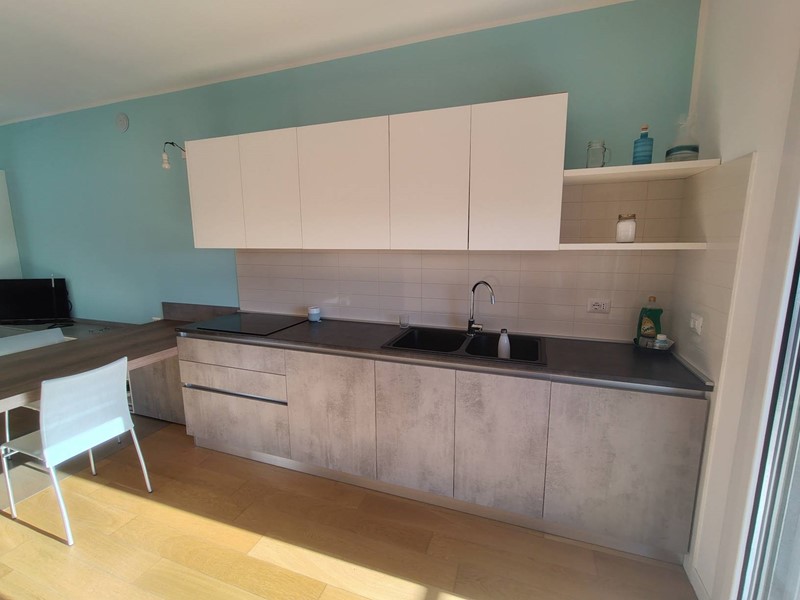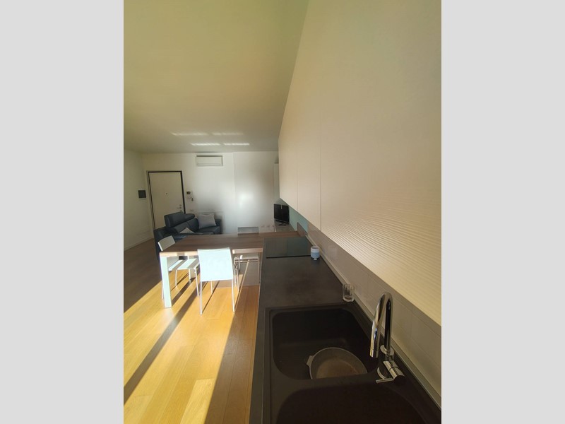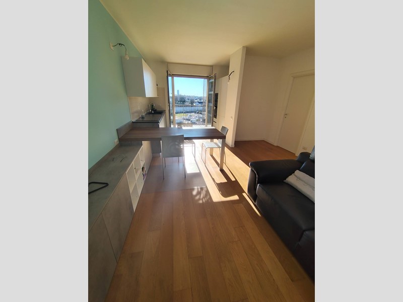 Lalloggio è composto da: ingresso, soggiorno con cucina a vista, camera, bagno, terrazzo di 24 mq, cantina e box di 18 mq al piano -2.