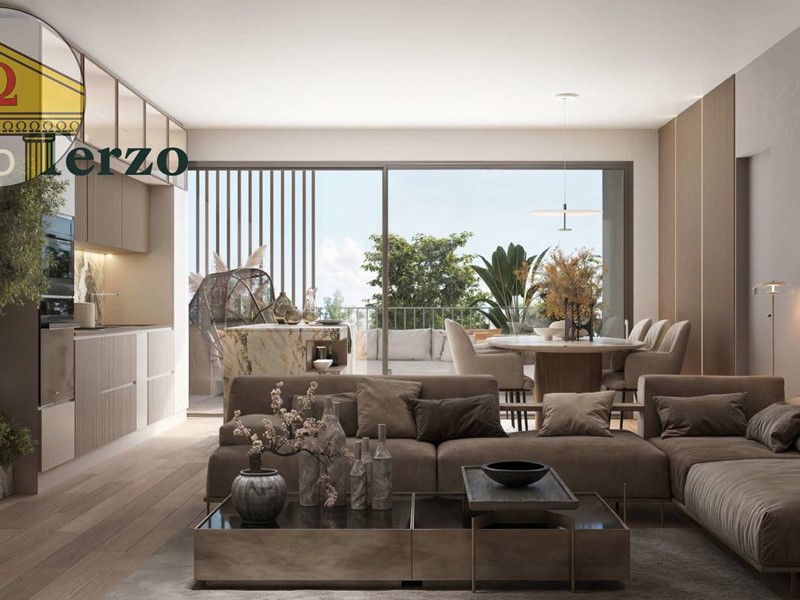 Zona Living: Un salone di 46 mq inondato di luce naturale, con accesso diretto alla terrazza.