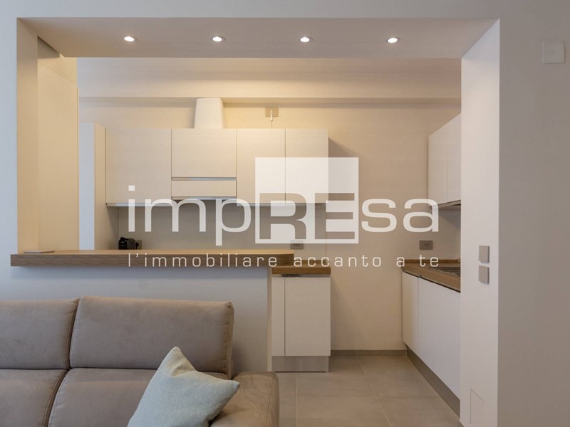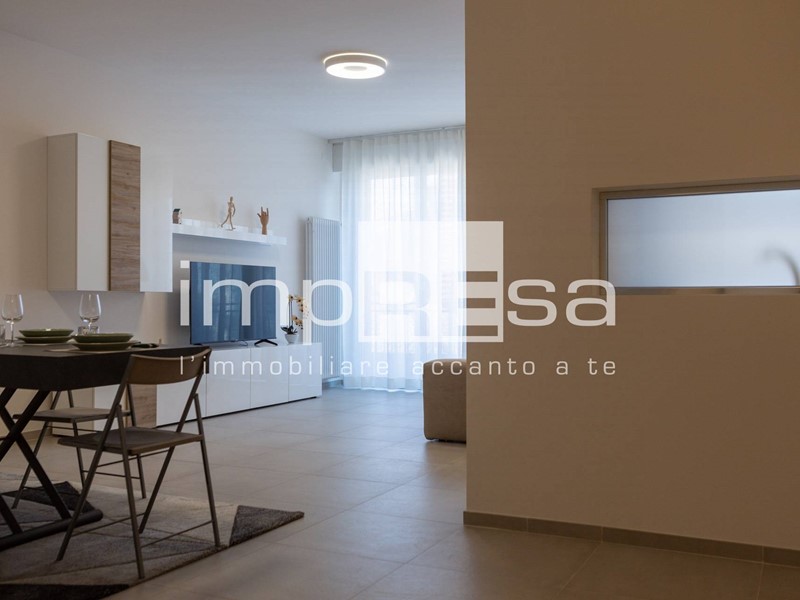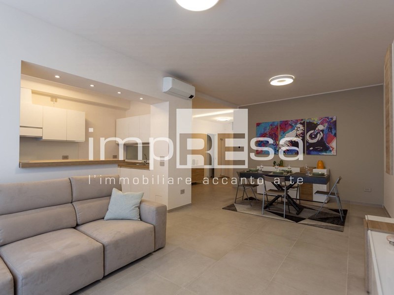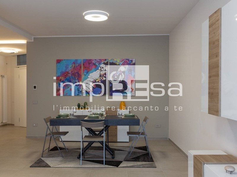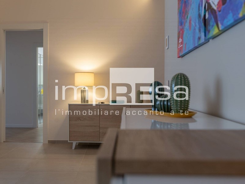 L'appartamento è così composto, a traverso un comodo ingresso veniamo immersi in una spaziosa zona giorno dove si trovano sala pranzo, soggiorno e cucina semi separata totalmente arredata ed equipaggiata, questo ambiente grazie ad una grande vetrata che da accesso ad un terrazzo diventa molto luminoso. L'ingresso dispone di un comodo ripostiglio.