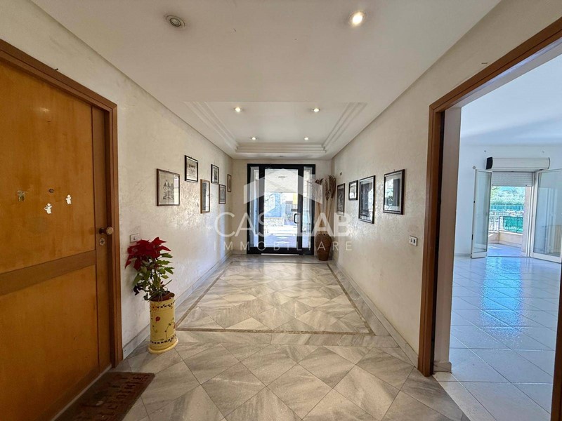 ingresso su ampio soggiorno con balcone, cucina abitabile con struttura in muratura e annessa una comoda lavanderia, due camere da letto spaziose, doppi servizi (di cui uno con vasca ed uno con doccia) e utile ripostiglio finestrato.