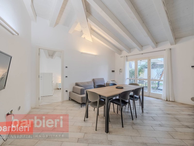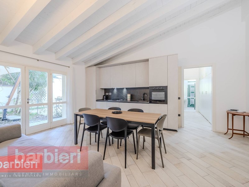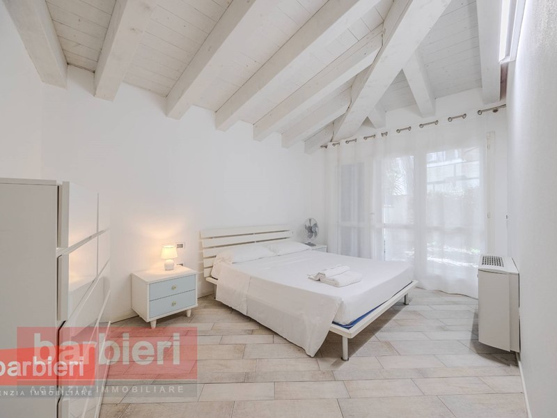 Vendiamo a Cervia appartamento ristrutturato in complesso direttamente sul caratteristico porto canale di Cervia, a 200 metri dal mare. L'immobile è sito al piano terra con ingresso e giardino indipendenti ed è composto da un ampio soggiorno con angolo cottura, disimpegno, due camere matrimoniali, bagno, terza camera matrimoniale con letto a castello aggiuntivo e bagno privato finestrato con box doccia. La terza camera da letto è stata ricavata dal garage. Volendo è possibile fare il cambio di destinazione d'uso del garage, accatastando il posto auto che attualmente è incluso nella corte esclusiva.