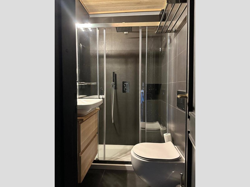 Internamente è composto da ingresso su disimpegno che conduce a un soggiorno luminoso, dotato di un comodo divano letto e una struttura su misura in legno con ulteriore letto, cucina è completamente attrezzata con elettrodomestici, un bagno con box doccia.