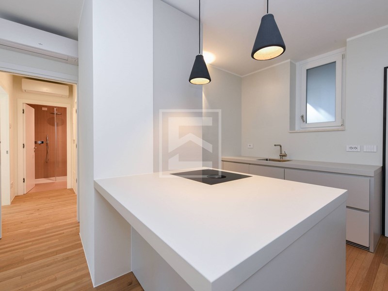 Appartamento completamente ristrutturato ed ultimato nel 2023 con finiture di alto livello, dalla cucina su misura BULTHAUP alla panca e mobili bagno fatti su misura, dal parquet nella zona giorno e camere alle porte a filo muro, dal piano cottura ad induzione con aspirazione interna BORA alla lavastoviglie e forno MIELE, dal condizionatore doppio split alle pareti di bagno e cucina in finitura smaltata quindi facilmente lavabile.