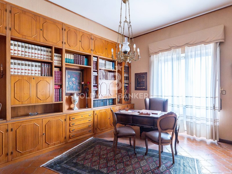 Varcato lingresso, si accede a un comodo e luminoso vano studio che conduce a un salone triplo con affaccio terrazzato su Via Pola.