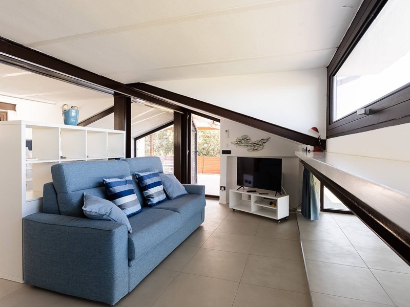 Fiore allocchiello della proprietà è la straordinaria terrazza sul tetto, un autentico solarium panoramico con vista mare, perfetto per cene allaperto, momenti conviviali o semplicemente per godere della bellezza del paesaggio.