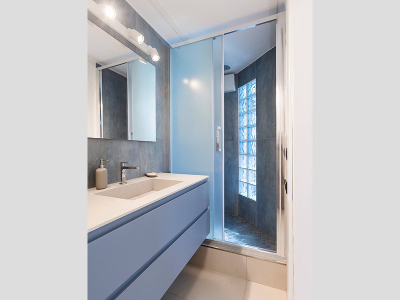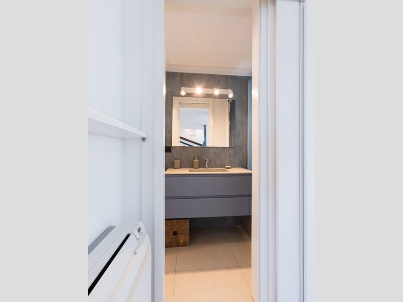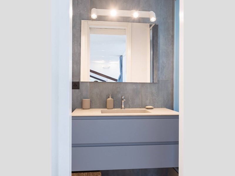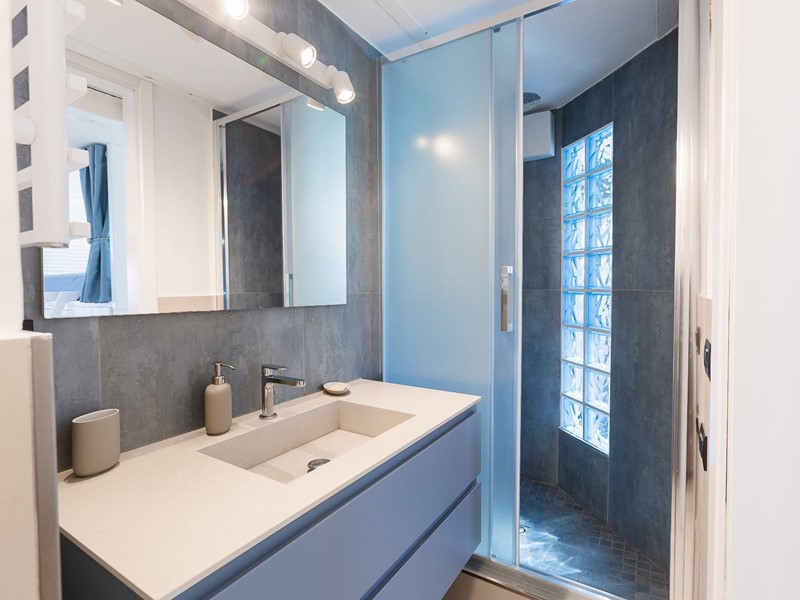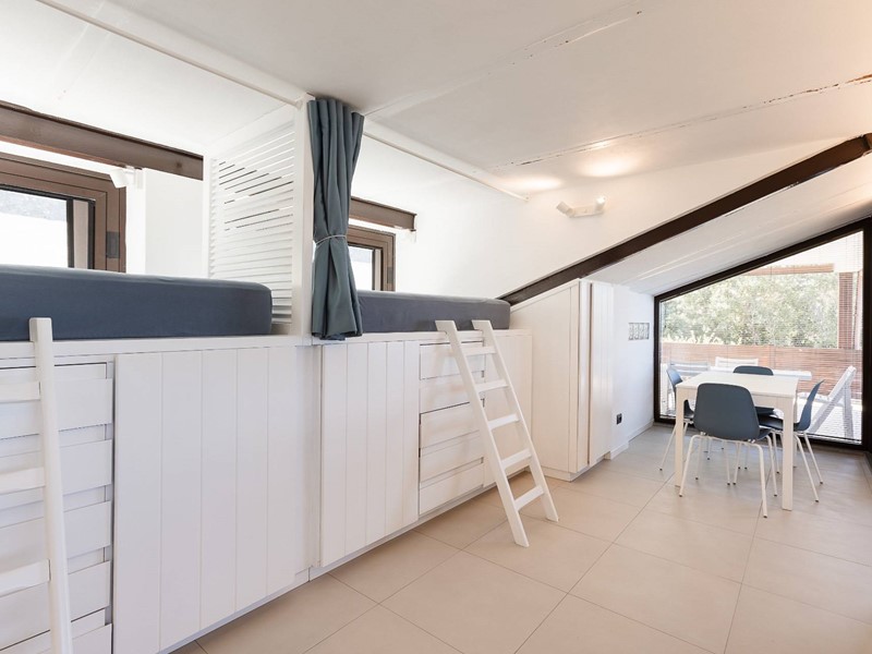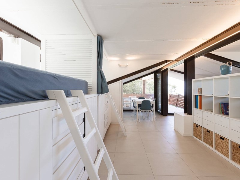 La zona notte è composta da una spaziosa camera pensata per offrire il massimo del relax. Il bagno, rifinito con materiali di pregio, completa linterno con uno stile sobrio ed elegante.
