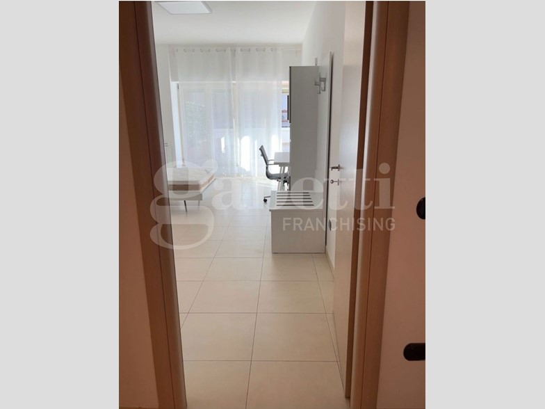 L'immobile è così composto: ingresso in disimpegno, soggiorno con angolo cottura, bagno con aereazione forzata, due camere da letto di cui una con cabina armadio, balcone verandato accatastato, terrazzo condominiale con uso esclusivo dell'immobile.